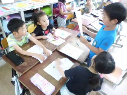 今日は,まち探検で見つけたすてきな場所をかんさつカードから