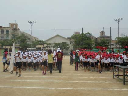 5月24日(水)の1・2校時に,6月3日(土)に実施する運動会に向けての全校練習を行いました。まず初めに,入場行進の練習を行い,その後開会式の練習をしました。開会式の練習では,校歌を歌ったり宣誓の練習をしたり,準備体操の練習をしたりしました。そして,最後に退場の練習をしました。