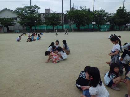 1年生は掃除の時間に,運動場の小石拾いをしています。