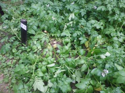 じゃがいもは花も咲き,茎も倒れてきました。そろそろ収穫が近いかな?いっぱいできているか楽しみです。
