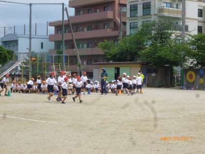 今日の体育では、兄弟学年の2年生と一緒に「おかごでワッショイ!」の練習をしました。かごに入った3つのボールを落とさずに、2年生との合同チームでリレーします。2年生をリードしながら、頑張っていました。