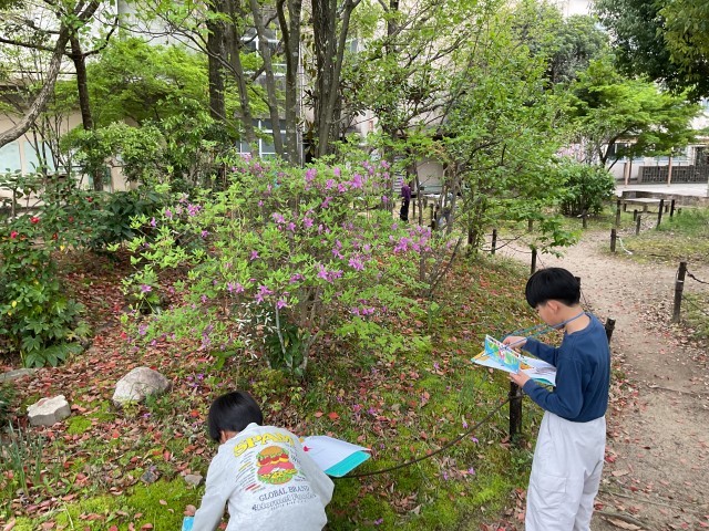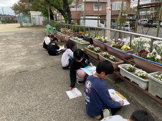 春を感じられるものをグラウンドやネイチャーランドで見つけて絵を描きました。