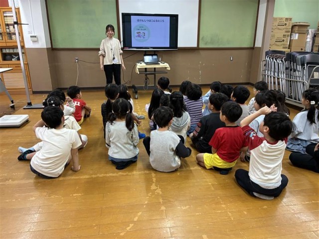 保健室の先生から、保健室のきまりを教えてもらいました。その後に、身長と体重を測ってもらいました。