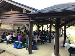 昨夜は早くからしっかりと寝た子が多かったようです。朝から布団やシーツをたたみ荷物をまとめて朝食。みさきの家での食事はこれが最後です。今日も快晴。涼しい風に秋を感じながら食べました。