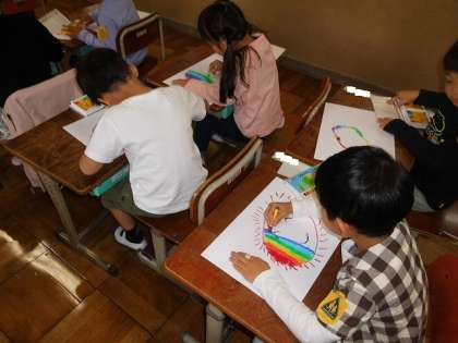 色や形をどんなふうにするか,楽しみながら考えてかきました。