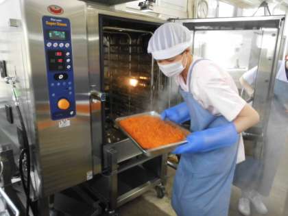ソテーに入れる「にんじん」はスチームコンベクションオーブンで蒸しています。