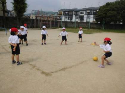 1年生は体育の学習で,ころがしドッジボールを始めました。