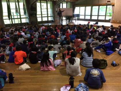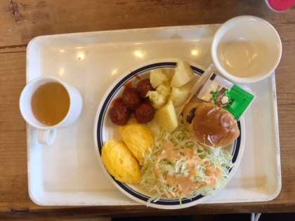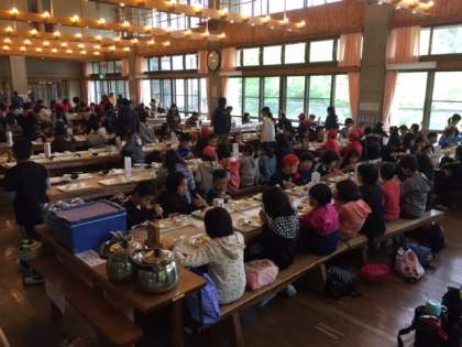 みんな元気に朝を迎えました。天気も晴れてきているので,予定通り山登りに出発します。朝食は,花背山の家での初のバイキング。山登りに備えて,しっかり食べています!