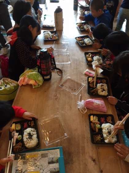 お昼をたべて,昼からの活動に備えます。