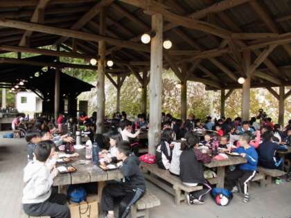 魚さばきをした炊事場でそのままお昼ご飯です。