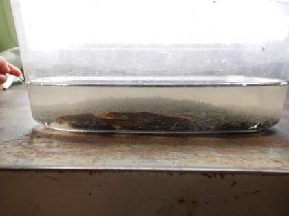 いきものがかりさんは,さっそく「どじょう」を家からもってきてくれました。