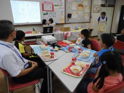 体育健康教育室からも室長と専門主事が子どもたちが食べる様子を見に来られました。