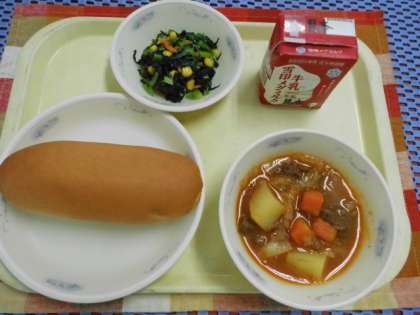 ★今日は,運動会で,3年生以上は,教室にイスがないので,3年生は,ランチルームと家庭科室。4年生以上もさわやか和室等々に分かれ,給食を食べました。
