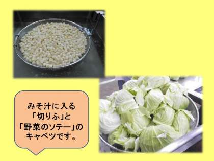 今日のヒレカツは,給食調理員さんの手作りです。豚ヒレ肉に塩・こしょうをして,1枚ずつ衣をつけて油で揚げています。子どもたちが,がんばったLalala Festivalにピッタリな献立でしたね。