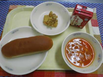 ★今日のランチルームは,6−3です。スパイシーチキンのおかわりにたくさんの子どもたちが並んでいました。