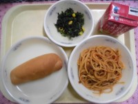 「だいずとけいにくのトマトにがパンとたべたらおいしかったです」(2−2)