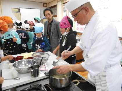 午後からの授業は,支部への公開もかねていて他校の教職員や食育指導員さんへの研修での参観等もありました。