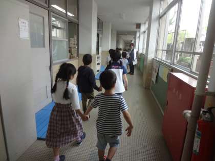23日(火)の3時間目に2年生のお兄さん・お姉さんに案内してもらって学校探検をしました。2年生が迷子にならないように,しっかり手をつないでくれていたので1年生も安心して探検ができました。学校で初めて行く場所や,普段は行くことができない校長室,学校生活で欠かせない職員室や保健室などたくさんの場所を見ることができました。また一つ,1年生のみんなが学校を好きになった時間となりました。2年生ありがとう!!