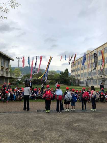 少し雨が心配される中,芝生の上で出発式を終え,6年生が修学旅行に出発しまた。楽しみがたくさん詰まった2日間。たくさんの思い出とともに帰ってきてくれることでしょう。6年生のみなさん,いってらっしゃい。