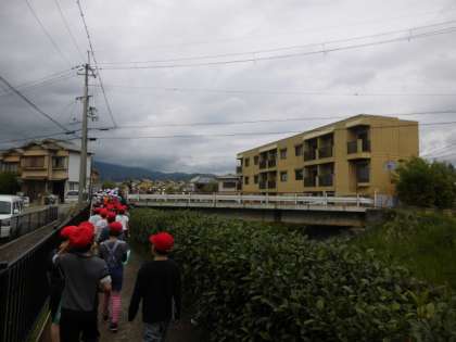 広い校区なので,学年で二手に分かれて,3回に分けて探検します。