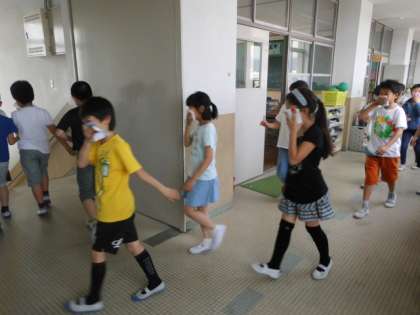 今日は火災が起きた時の避難訓練をしました。火災がどこに起こったかを放送で確認し,煙を吸わないようにハンカチを口に当て,静かに速やかに運動場に避難しました。いつ,どこで火事が起こっても冷静に行動できるよう,日頃から備えたいものです。「備えあれば憂いなし」です。
