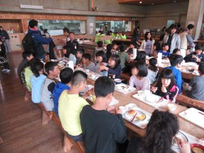 朝のつどいを行い、今日の活動の見通しをもちました。みんな元気そうで、朝ごはんもたくさん食べていました。これから、手紙を書く活動を行い、アスレチックに行きます。1日目からずっと楽しみにしていた活動です!