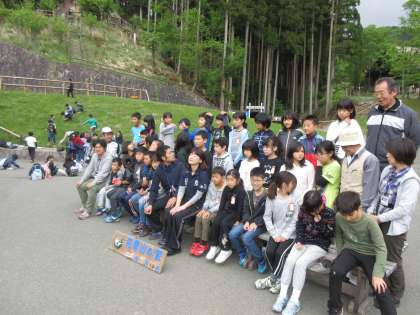 クラス写真を撮りました。さあ、午後からの活動が始まります。午後の活動は、魚つかみと魚さばきです。魚たちも、池の中で準備OKです。