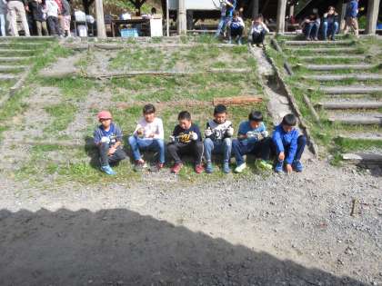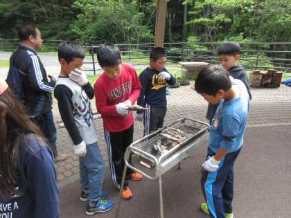 さばいたイワナを、炭で焼きました。自分で何度もひっくり返して、いい焼き加減にすることができました。「今までで一番おいしい!」と喜んでいました!