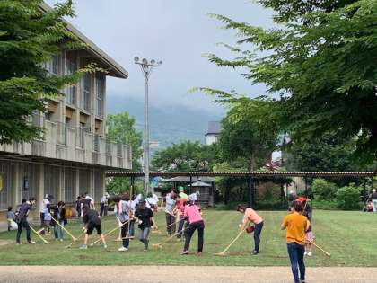6月29日(土)に芝生の種まきを行いました。少々お天気が心配されましたが,雨が降ることなく,作業を行うことができました。PTA・NPOのみなさん,教職員,子どもたち,たくさんの方々にご参加いただき,ありがとうございました。夏休みが終わるまで芝生は使えませんが,その間に青々と育って,迎えてくれることと思います。しばらく芝生はお休みです。