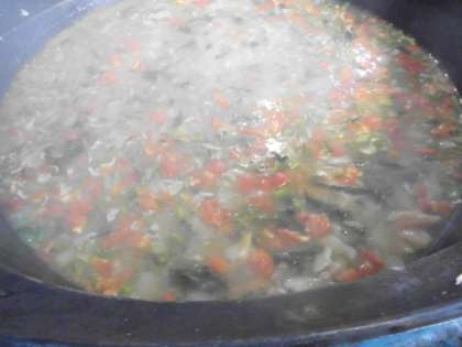 ★トマトだご汁は,九州の郷土料理です。給食室では,すいとんを作る材料にホールトマトを入れてだんごを作ります。うすいサーモンピンク色に仕上がります。