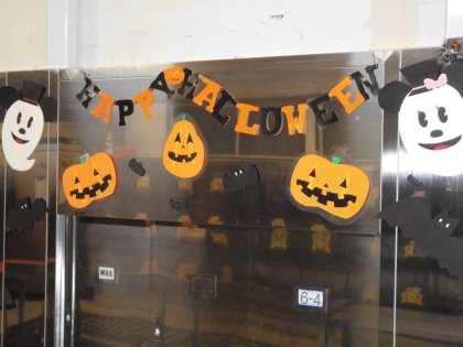 10月も半ばになり,給食室のサービスホールの掲示を交換しました。