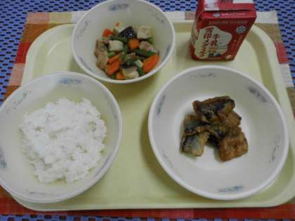 ★さんまのかばやき風・・・揚げたさんまを蒲焼きのたれとからめています。