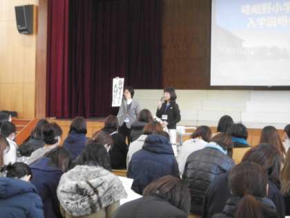 来年度の入学に向けて,体育館で入学説明会を行いました。