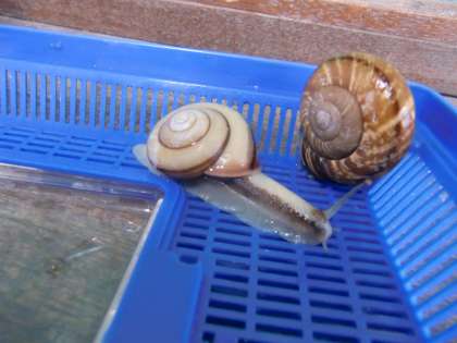さて,にじいろ学級では「カタツムリ」を二匹飼っています。今日の朝,カタツムリの様子を見てみると・・・1匹は殻に閉じこもっていて姿が見られませんでしたが,もう1匹は,ぐーっと体を伸ばしていました。とても気持ちよさそうですね。みなさんも,おうちの中で体を伸ばして,リフレッシュしてくださいね。