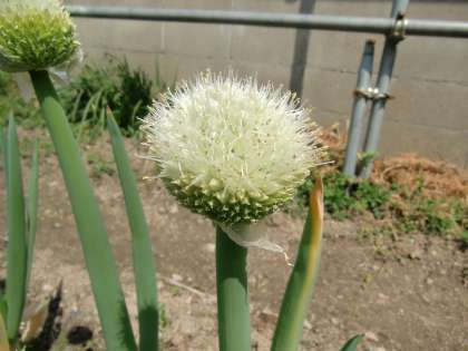 これはネギのお花です。「ネギ坊主」と呼ばれるもので,食べることもできるそうです。どんな味がするのかな?しばらく経つと,このネギ坊主の中に種ができます。ネギ坊主が咲くと,ネギの成長は止まってしまうそうです。