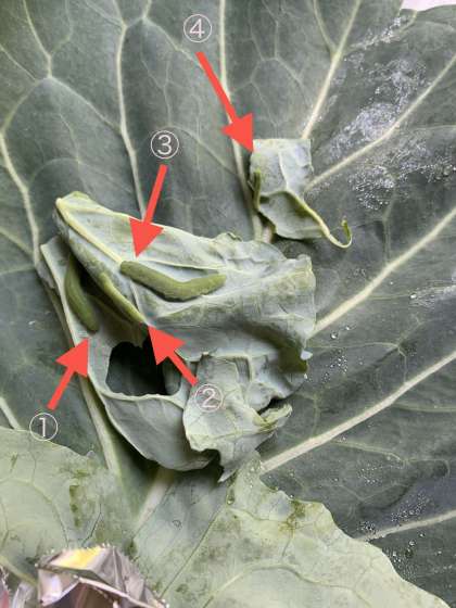 先にうまれたよう虫の方が,こいみどり色をしていますね!
