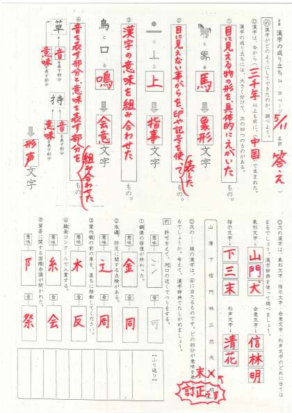 【国語】漢字の成り立ちプリント 選択肢の「未」→「末」