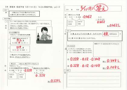 【学校のホームページトップの左上の「5年生」のカテゴリを選択していただくと,5年生に関するものだけが表示されますので,課題のヒントや答えを探す際にご活用ください。】