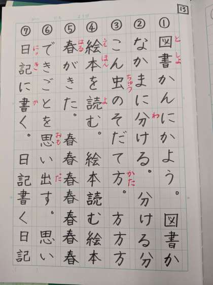 5月18日,19日の課題,「かん字ドリルP.13(ノート)」の課題についての参考写真です。