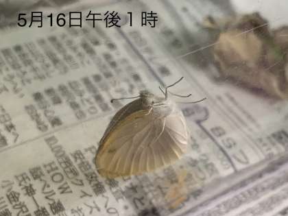 午後1時に見てみると,大人のモンシロチョウになっていました。