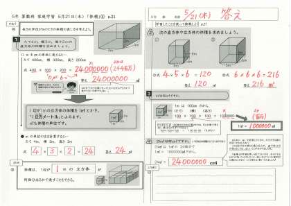 今日の【算数】の家庭学習から,≪ 立方メートル ≫が出てきましたね。