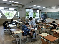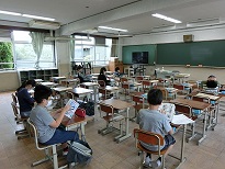 希望者が少人数のグループごとに教室に来て,健康観察をした後,学習についての相談をしたり,来週の課題についての話を聞いたりしました。