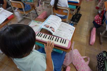 音楽の学習では,音の高さに気を付けて,階名で歌ったり演奏したりする学習をしています。