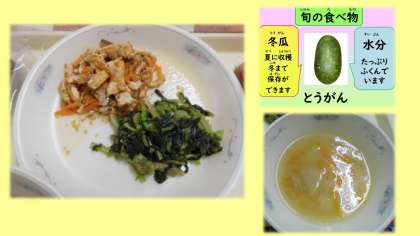 「とうがんのくずひきがとてもおいしかったです。そして,すいぶんがたくさんあることを知りました。」(3−2)