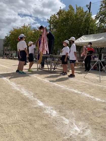 緊張の瞬間 十の位が入って順位が決定しました。午前の部 優勝は黄組 準優勝は青組 パワフル賞は赤組 でした。どの色もみんな力一杯頑張りました!