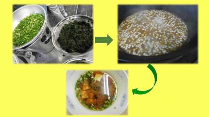 (4−1)⇒⇒今日のみそ汁には【京北みそ】(赤みそ)を使っています。大豆等も京北地域でとれたものを使って作られたものです。