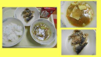 ★10月の給食の目標は,「何でも食べてじょうぶな体をつくろう」です。今日の献立は,子どもたちにとって食べやすかったようで,ごはんも含めてよく食べていました。