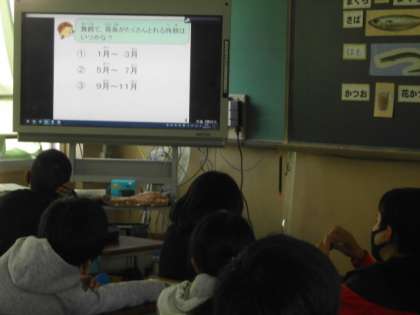 ・6月から給食で食べた魚の献立を写真で見ながら思い出し,魚の実物大の写真も見る。