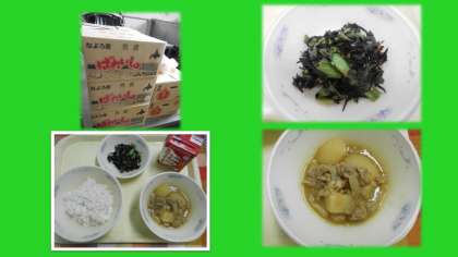 ⇒肉じゃが(カレー味)は,三温糖・料理酒・カレー粉・しょうゆで調味しています。