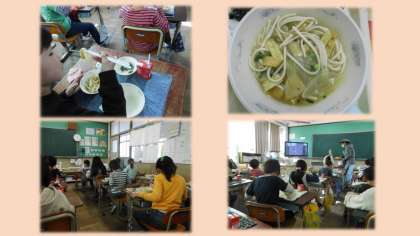 「きょう。いちばんおいしかったのは,カレーうどんだったです。ぜんぶめっちゃくちゃおいしかったです。660にんのきゅうしょくをつくってくれてありがとうございます。」(1−3)